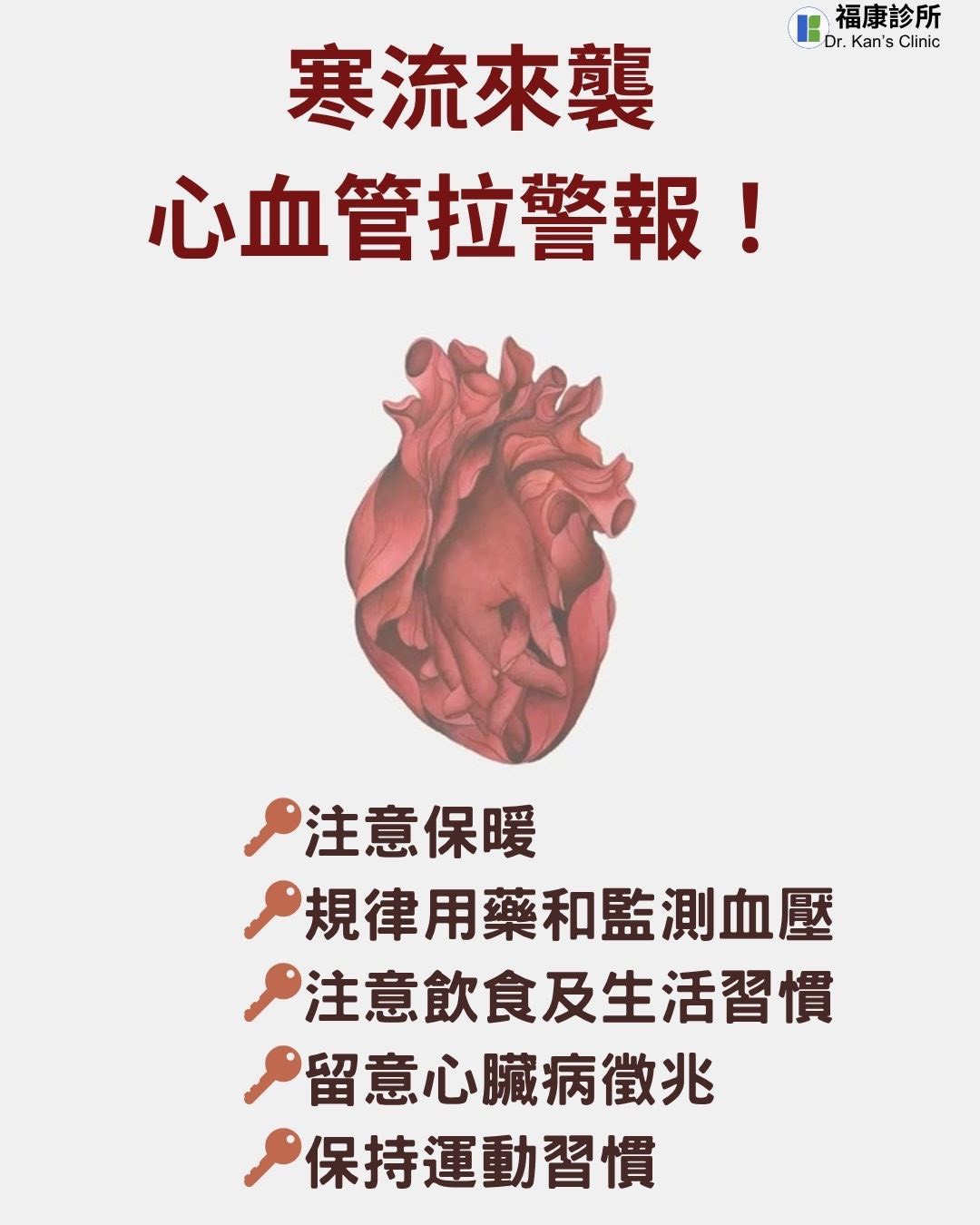 #心血管保健 #心臟病預防 #寒流保暖 #高血壓注意事項 #心肌梗塞 #天氣變化 #福康診所 #嘉義診所 #慢性病管理 #EECP